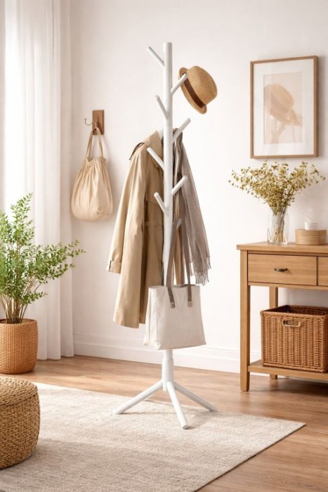 Vneste do svého domova pořádek i eleganci s tímto volně stojícím stojanem na kabáty v moderní béžové barvě. Kombinuje funkčnost a minimalistický design, díky čemuž se hodí do předsíně, kanceláře nebo ložnice. Snadná montáž bez nářadí umožní, že jej během několika minut postavíte a ihned začnete používat.