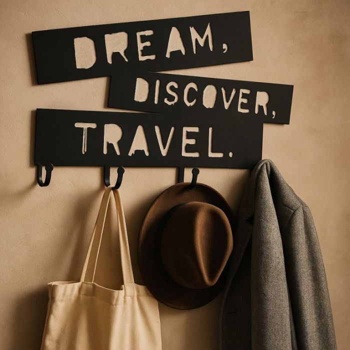 Popis: Nástěnný věšák Dream Discover Travel, černý kov, 4 háčky