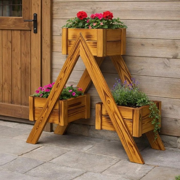 Popis: Dřevěný stojan na květiny 68×56×24 cm, 3 truhlíky