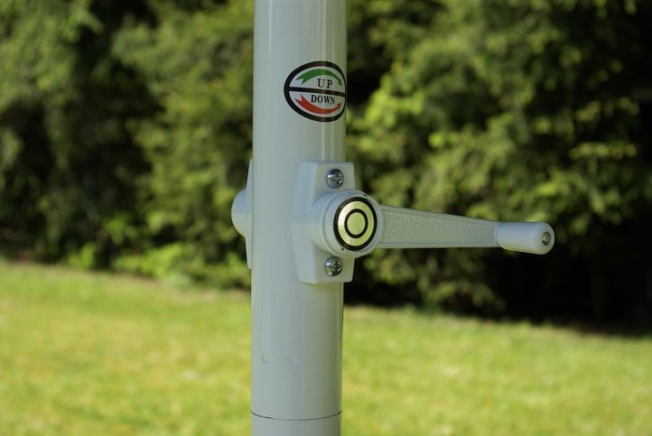 Stabilní a elegantní slunečník který má ideální odstín pro Vaši zahradu nebo terasu. Snadné roztažení a stažení díky klice. Ocelová hlavová spojka a otvor pro větrání pod špičkou zajišťují zvláštní stabilitu. Zahradní deštník je dodáván bez stojanu. Slunečník lze demontovat a uložit, aby se ušetřilo místo. Vezměte prosím na vědomí, že slunečníkby měl být úplně suchý, než je zabalen, aby se zabránilo hnilobě. U tohoto slunečníku výrobce doporučuje stojan s hmotností nejméně 40 kg. Vhodný deštníkový stojan a ochranné kryty naleznete také v našem sortimentu.