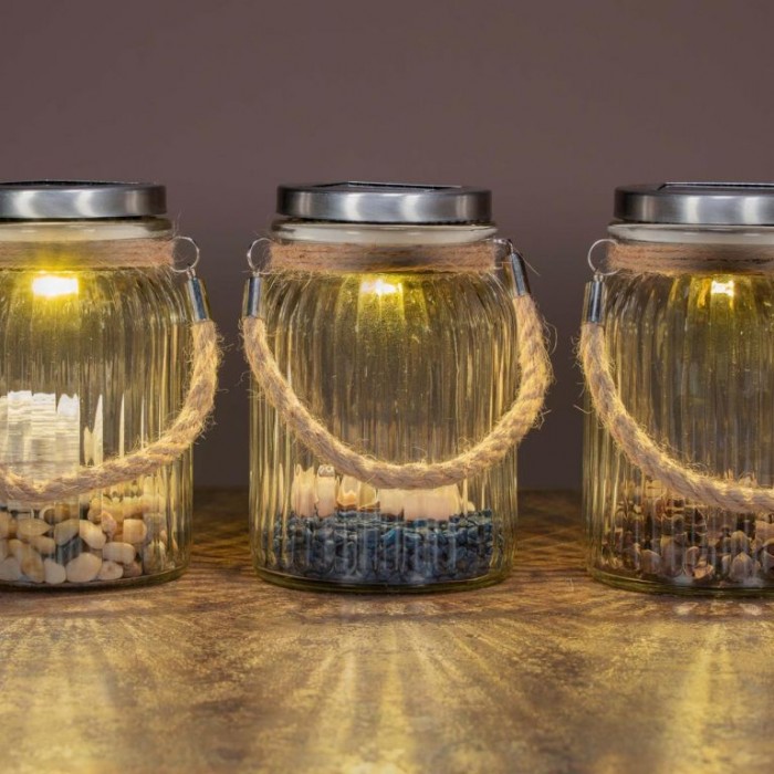 Solární světlo, sklenice - 3 LED, teplá bílá