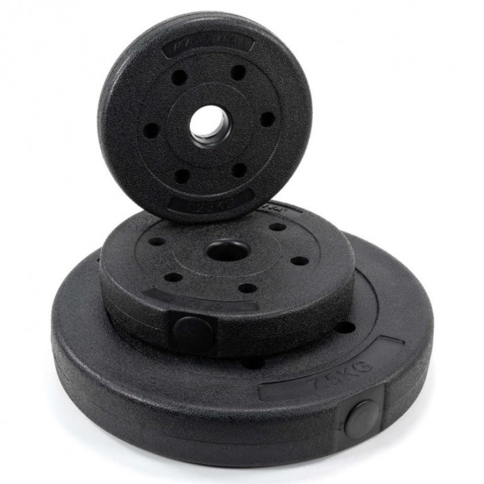 - hmotnost: 30 kg (2x 7,5 kg, 4x 2,5 kg, 4x 1,25 kg)
