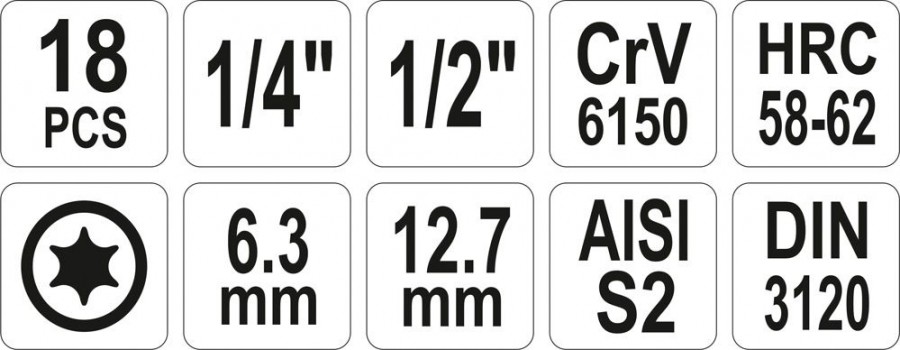 Popis: Bity sada 18 ks - TORX T10 - T60mm