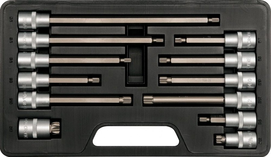 Sada kvalitních zástrčných prodloužených klíčů XZN s bitem pevně spojeným s hlavicí se čtyřhranem.