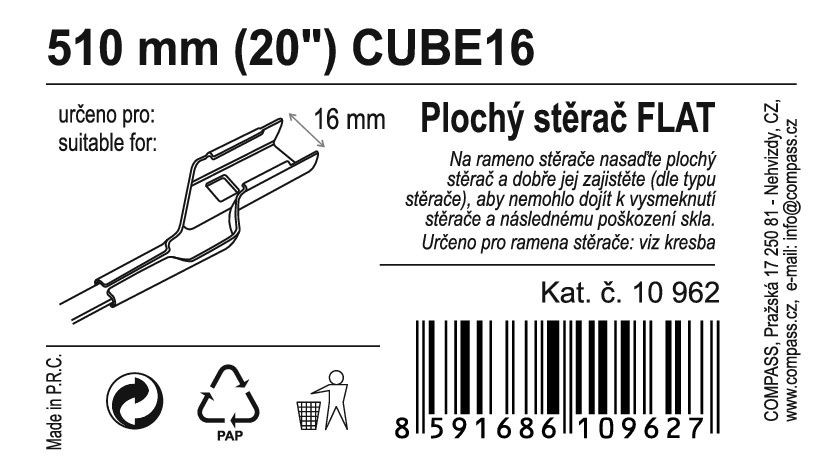 Popis: Stěrač Flat bulk 20" (cube 16) - 510 mm