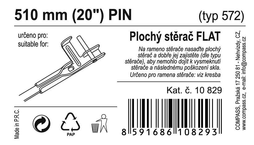 Popis: Stěrač FLAT BULK (PIN) - 20"/510 mm