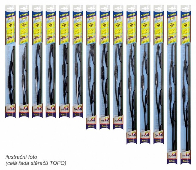 Masivní kvalitní celokovový stěrač TOP Q s grafitovým břitem. Tento stěrač je konstruován s vyváženým počtem vahadel tak, aby zajistil dokonalý přítlak a spolu s grafitovým břitem i dokonalé stírání s dlouhou životností.