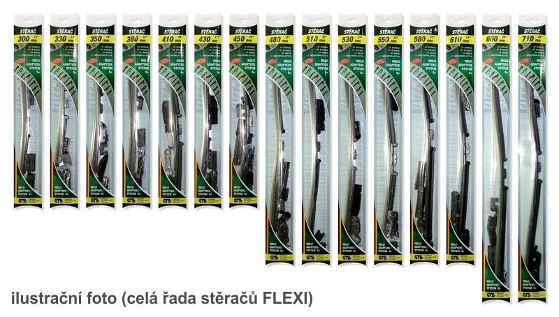 Plochý stěrač Flat Flexi v průhledném plastovém obalu potěší každého řidiče. Obsahuje celou řadu adaptérů, díky kterým je snadné stěrač upevnit na většinu běžně používaných zakončení ramének stěračů. Stěrač je vybaven grafitovým břitem pro výtečné stírání.
