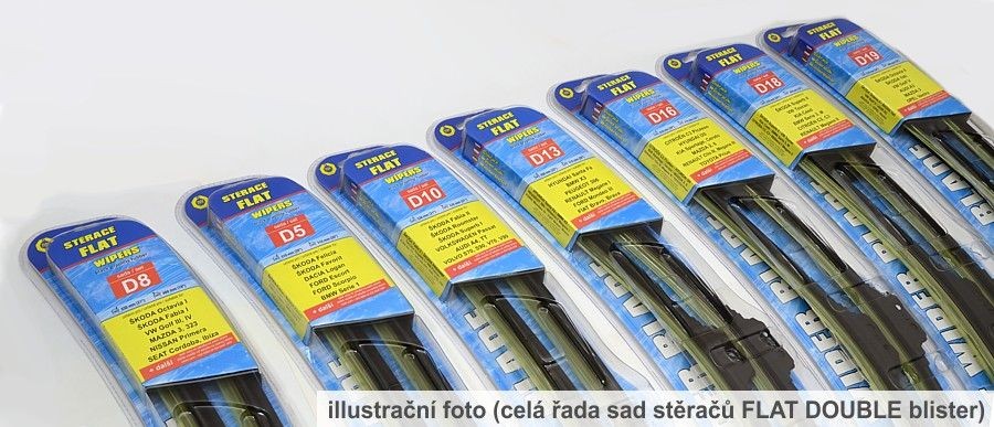 Sada dvou plochých stěračů typu Flat double (řidič + spolujezdec) se speciálním uchycením. Dopřejte si zásobu těchto kvalitních stěračů. Délky stěračů a systém uchycení na ramínko jsou přizpůsobeny těmto vybraným vozům - ŠKODA Octavia III, ŠKODA Superb II, Hyundai i30, i30 CW, KIA Ceed, Ceed SW, CITROËN C2, C3, VW Touran