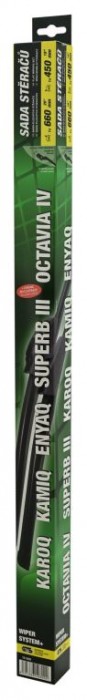 Popis: Stěrače FLAT SET 660+450mm GREEN OCT IV, SUP III, Karoq, Kamiq, Enyaq