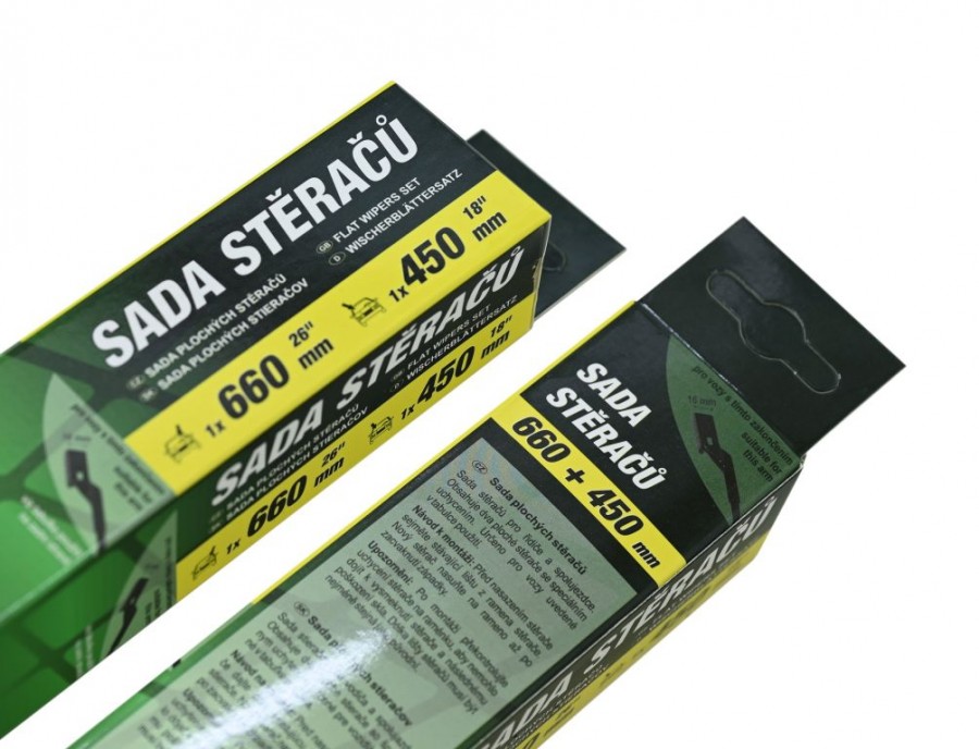Výhodné balení dvou plochých stěračů (řidič + spolujezdec) s uchycením na ramínka typu CUBE16.