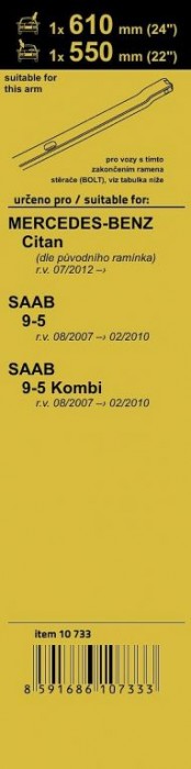 - určeno pro vozy: Mercedes-Benz Citan (ramínko BOLT) 07/12 -, Saab 9-5 08/07 - 02/10, Saab 9-5 Kombi 08/07 - 02/10