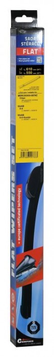 Sada dvou plochých stěračů FLAT (řidič + spolujezdec) se speciálním uchycením. Délky stěračů a systém uchycení na ramínko jsou přizpůsobeny vybraným vozům. Vysoce kvalitní pružný člen plochého stěrače zajišťuje stejnoměrný tlak grafitového břitu v celé jeho délce, což zamezuje rozmazávání nečistot a vytváření pruhů.