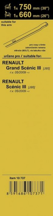 Sada dvou plochých stěračů typu Flat (řidič + spolujezdec) se speciálním uchycením. Dopřejte si zásobu těchto kvalitních stěračů. Délky stěračů a systém uchycení na ramínko jsou přizpůsobeny těmto vybraným vozům - Renault Grand Scénic III [J95] 05/09, Renault Scénic III [J95] 05/09