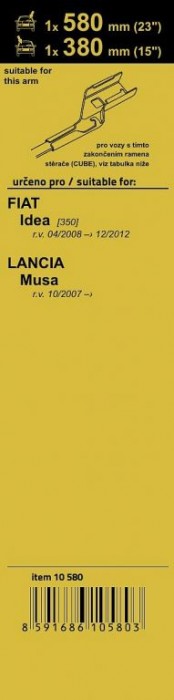 Sada dvou plochých stěračů typu Flat (řidič + spolujezdec) se speciálním uchycením. Dopřejte si zásobu těchto kvalitních stěračů. Délky stěračů a systém uchycení na ramínko jsou přizpůsobeny těmto vybraným vozům - Fiat Idea [350] 04/08 - 12/12, Lancia Musa 10/07.
