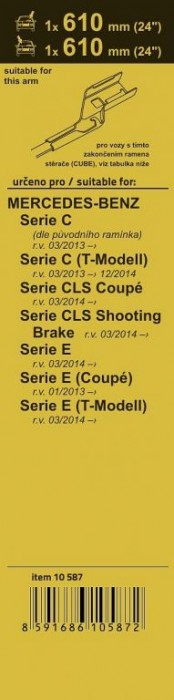 Sada dvou plochých stěračů FLAT (řidič + spolujezdec) se speciálním uchycením. Délky stěračů a systém uchycení na ramínko jsou přizpůsobeny vybraným vozům (viz tabulka použití). Vysoce kvalitní pružný člen plochého stěrače zajišťuje stejnoměrný tlak grafitového břitu v celé jeho délce.