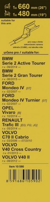 - určeno pro: BMW Serie 2 Active Tourer [F45] 09/14 -, BMW Serie 2 Gran Tourer [F46] 06/15 -, Ford Mondeo IV [07] 02/07 - 12/14, Ford Mondeo IV Turnier [07] 02/07 - 12/14, Opel Vivaro [B] 10/14 -, Renault Trafic III [EG/FG/JG] 05/14 -, Volvo C70 II Cabrio 03/06 - 07/10, Volvo V40 Cross Country 01/13 -, Volvo V40 II 08/12 -