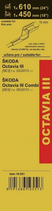 Stěrače FLAT SET (CUBE16) - 610 + 450 mm, OCT III