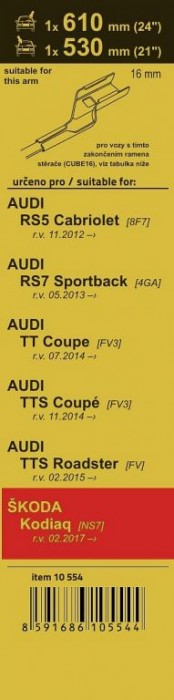 Stěrače FLAT SET (CUBE16) - 610 + 530 mm, Kodiaq