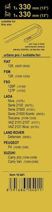 Sada dvou plochých stěračů FLAT (řidič + spolujezdec) se speciálním uchycením. Délky stěračů a systém uchycení na ramínko jsou přizpůsobeny vybraným vozům (viz tabulka použití). Vysoce kvalitní pružný člen plochého stěrače zajišťuje stejnoměrný tlak grafitového břitu v celé jeho délce.