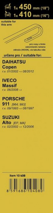 Popis: Stěrače FLAT SET (HOOK) - 450 + 410 mm