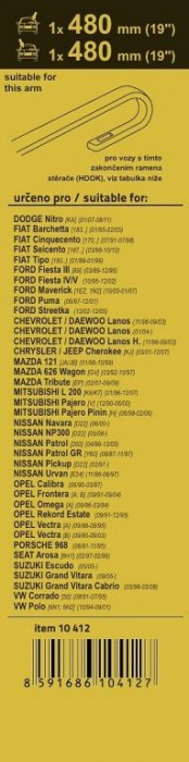 Sada dvou plochých stěračů FLAT (řidič + spolujezdec) se speciálním uchycením. Délky stěračů a systém uchycení na ramínko jsou přizpůsobeny vybraným vozům (viz tabulka použití). Vysoce kvalitní pružný člen plochého stěrače zajišťuje stejnoměrný tlak grafitového břitu v celé jeho délce.