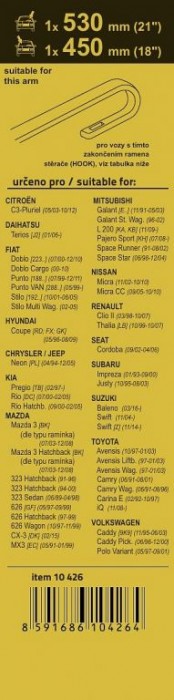 Popis: Stěrače FLAT SET (HOOK) 530 + 450 mm