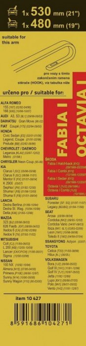 Popis: Stěrače FLAT SET (HOOK) 530 + 480 mm OCT I/FAB I