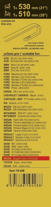Popis: Stěrače FLAT SET (HOOK) 530 + 510 mm