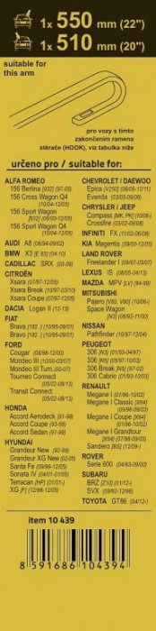 Popis: Stěrače FLAT SET (HOOK) 550 + 510 mm