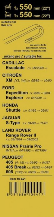 - určeno pro vozy: Cadillac Escalade 09/09, Citroën XM [Y3, Y4] 05/89 - 10/00, Ford Expedition 09/96 - 08/04, Ford Explorer 01/01 - Honda Shuttle 01/95 - 05/01, Jaguar S-Type 04/99 - 11/01, Land Rover Range Rover II 09/94 - 09/02, Nissan Prairie Pro [M11] 04/92 - 07/94, Peugeot 405 [4; 15] 06/92 - 04/97, Peugeot 405 Break [4; 15] 06/92 - 04/97, Peugeot 605 [Y30] 06/89 - 05/99
