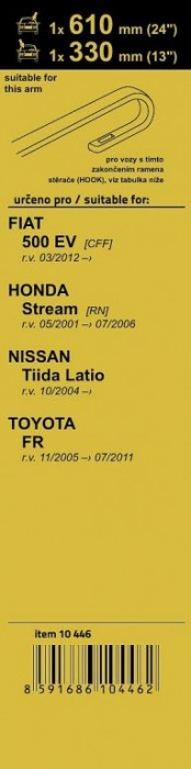 - určeno pro vozy: Fiat 500 EV [CFF] 03/12, Honda Stream [RN] 05/01 - 07/06, Nissan Tiida Latio 10/04, Toyota FR 11/05 - 07/11