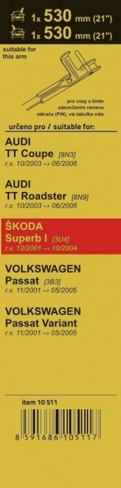 - určeno pro vozy: Audi TT Coupe [8N3] 10/03 - 06/06, Audi TT Roadster [8N9] 10/03 - 06/06, Škoda Superb I [3U4] 12/01 - 10/04, VW Passat [3B3] 11/01 - 05/05, VW Passat Variant 11/01 - 05/05