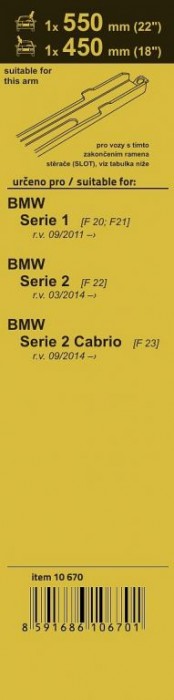- určeno pro vozy: BMW Serie 1 [F 20; F21] 09/11, BMW Serie 2 [F 22] 03/14, BMW Serie 2 Cabrio [F23] 09/14 -