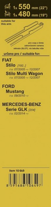 - určeno pro vozy: Fiat Stilo [192..] 07/05 - 12/07, Fiat Stilo Multi Wagon [192..] 07/05 - 12/07, Ford Mustang 09/10 -