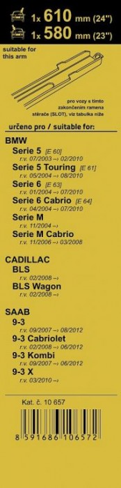 Délky stěračů a systém uchycení na ramínko jsou přizpůsobeny vybraným vozům (viz tabulka použití). Vysoce kvalitní pružný člen plochého stěrače zajišťuje stejnoměrný tlak grafitového břitu v celé jeho délce, což zamezuje rozmazávání nečistot a vytváření pruhů.