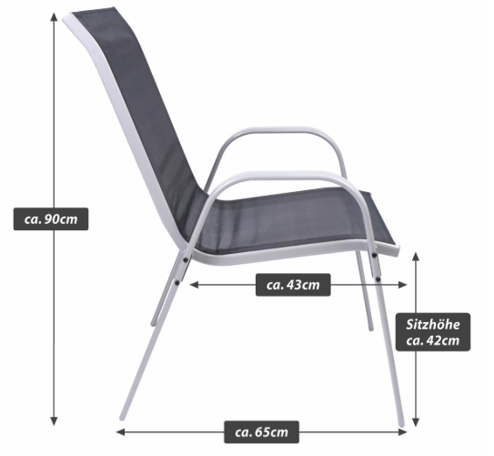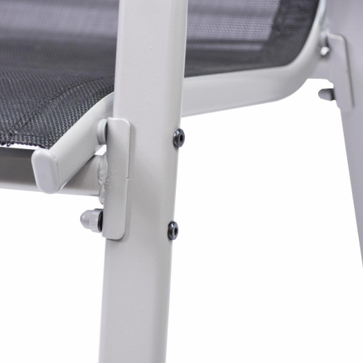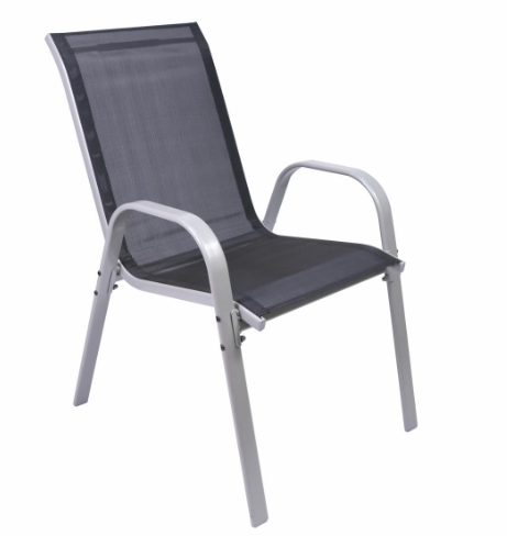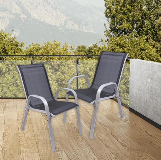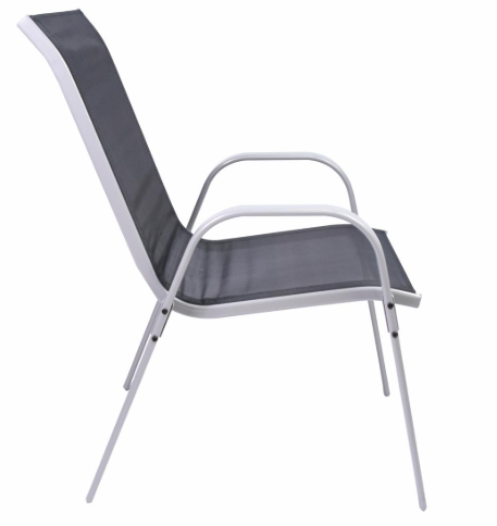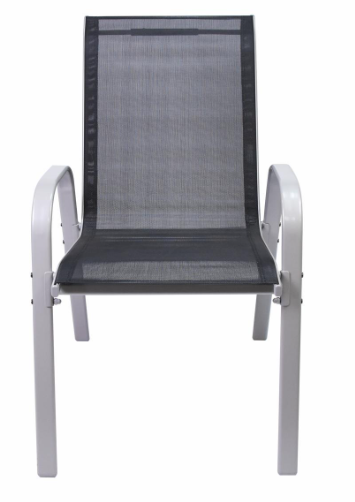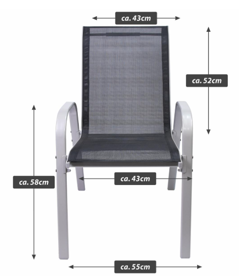 Židle BARI kombinuje pevný ocelový rám s elastickou textilií – materiály odolné vůči povětrnostním vlivům i snadné na údržbu. Rozměry 90 × 55 × 65 cm a stohovatelná konstrukce umožňují snadné uskladnění a praktické využití i na menších plochách.