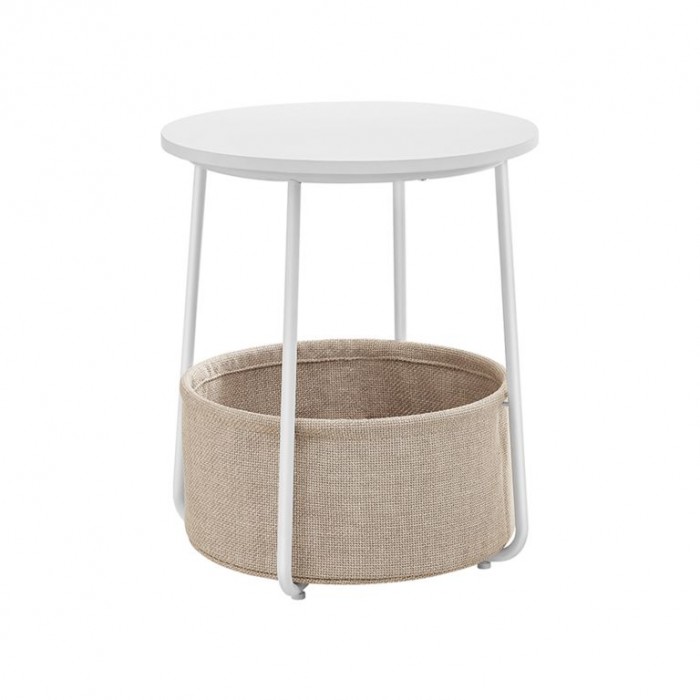 Kulatý odkládací stolek s látkovým košem, bílý, 45×51 cm
