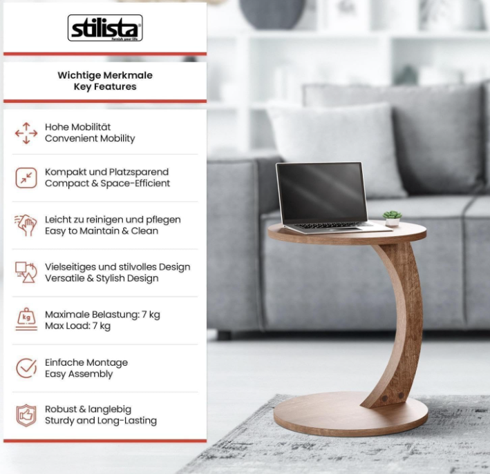 Stolek je vyroben z kvalitního kompozitního dřeva a jeho robustní konstrukce zajistí stabilitu až do 7 kg. Montáž zvládnete během chvilky díky přiložené sadě, údržba je jednoduchá – stačí otřít vlhkým hadříkem.