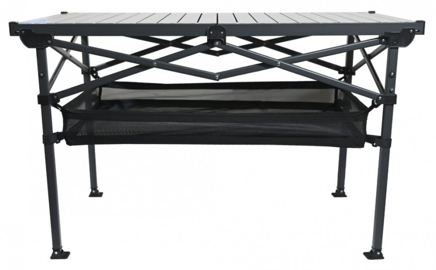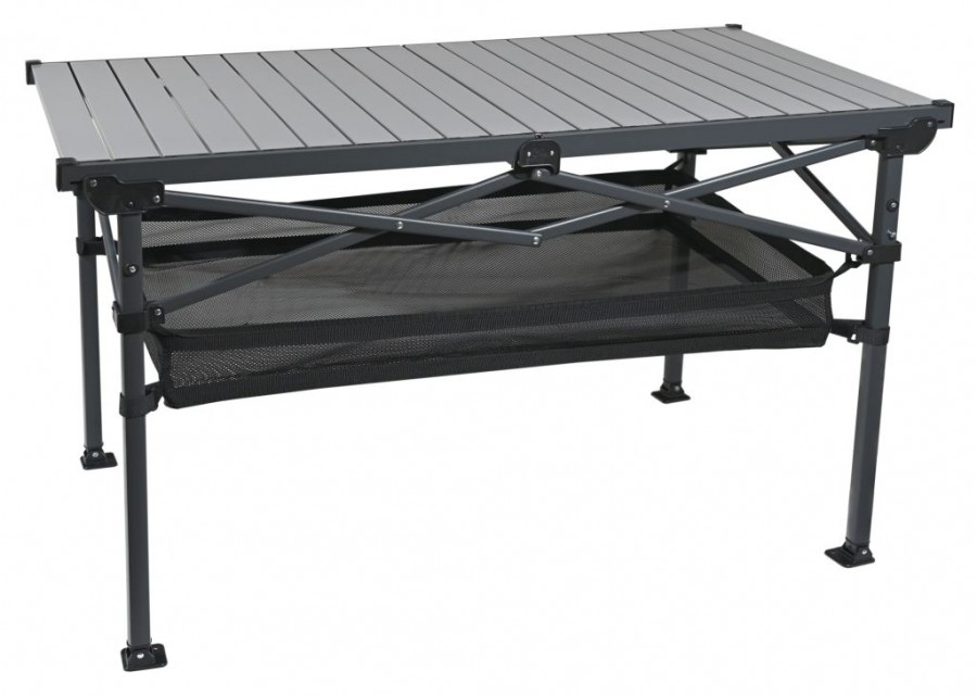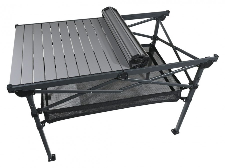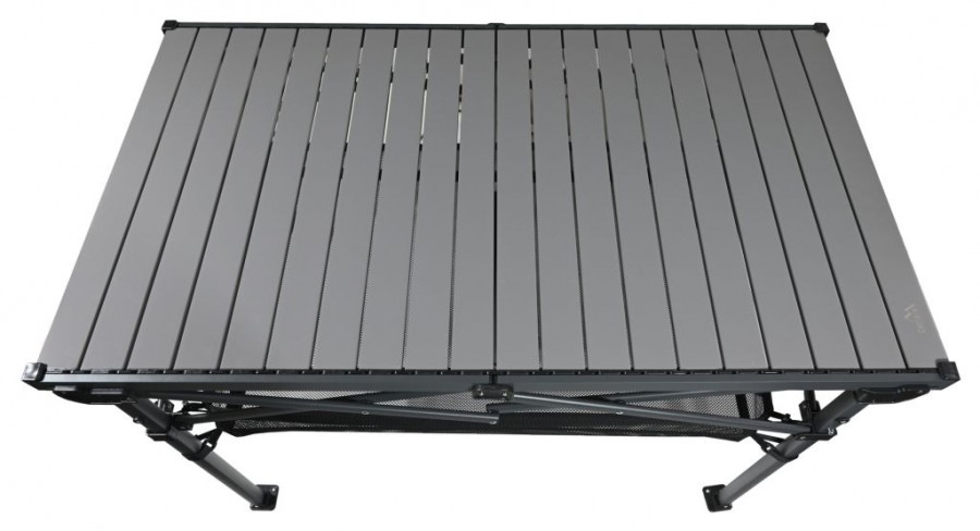 Stůl disponuje lamelovou hliníkovou deskou o rozměrech 118 x 70 cm ve výšce 70 cm, ta poskytuje dostatek prostoru pro přípravu a servírování jídel. S maximální nosností až 100 kg je stůl dostatečně pevný pro veškeré kempingové potřeby a potraviny.