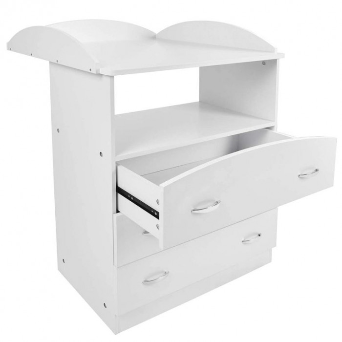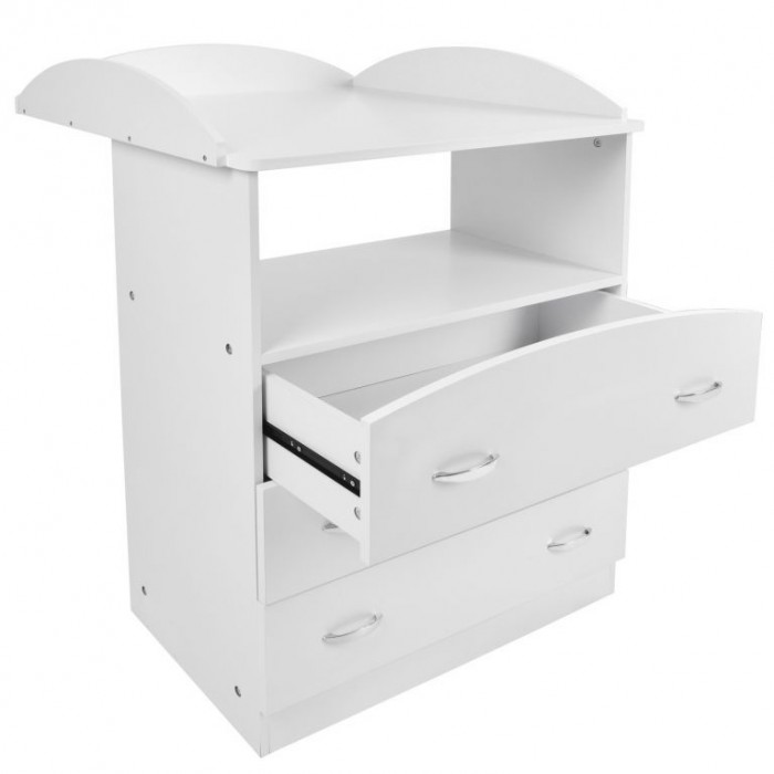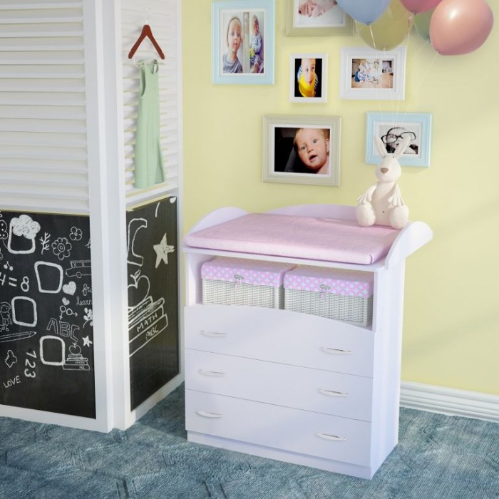 Přebalovací komoda se spoustou úložného prostoru. Moderní přebalovací komoda se vyznačuje jednoduchým designem a dostatkem úložného prostoru. Ve třech zásuvkách a otevřené přihrádce je prostor pro plenky, oblečení, výrobky pro péči a vše ostatní, co by mělo být při každodenní výměně plen vždy po ruce. Plenky lze pohodlně měnit na velké přebalovací ploše. Bílá barva se hodí do každého dětského pokoje a lze ji kombinovat s nejrůznějším nábytkem. Tuto nábytkovou jednotku lze později použít jako komodu. Upozornění: Matrace není součástí.