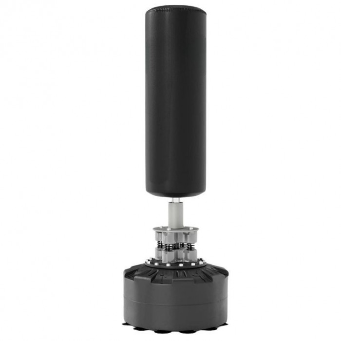 Masivní základna s 12 přísavkami a možností naplnění vodou či pískem zaručuje maximální stabilitu i při silných úderech. Pružinový mechanismus se čtyřmi ocelovými pružinami zajišťuje realistický odpor a rychlý návrat pytle do původní polohy. Boxovací pytel je ručně šitý z odolné PU kůže a nylonu, což garantuje dlouhou životnost a komfortní trénink bez nutnosti montáže na stěnu nebo strop.