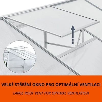 Vneste do své zahrady kousek přírody a rozšiřte možnosti pěstování! Skleník o ploše 4,75 m² nabízí ideální podmínky pro pěstování zeleniny, bylinek i květin. Střešní okno zajistí optimální klima a díky prostornému interiéru můžete pěstovat více druhů rostlin najednou.