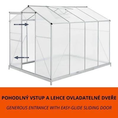 Popis: Polykarbonátový skleník 253 × 190 cm (4,75 m²) se základnou