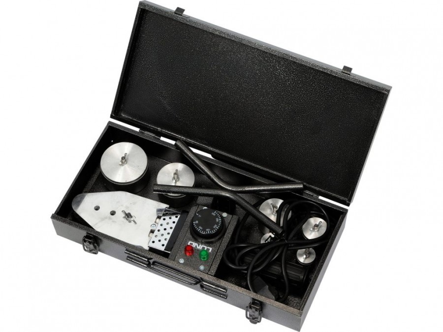 Svářečku lze regulovat a to v příkonu 0 - 800 W, regulace teploty 0 - 300 °C. Napájení kabelem z běžné zásuvky na 230 V / 50 Hz. Součástí sady jsou nástavce pro vnější a vnitřní průměry trubek: 20 / 25 / 32 / 40 / 50 / 63 mm. Vše je přehledně uloženo v kovovém kufru.