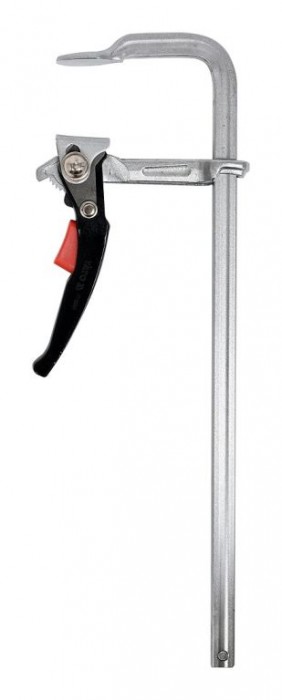 Svěrka s ráčnovým mechanismem určená pro profesionální použití v tesařství, při výstavbách, v dílnách i pro svařování.