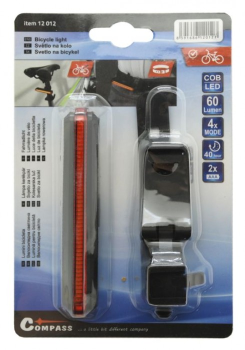Popis: Cyklosvětlo zadní COB LED, 60 lm červené, 4 funkce