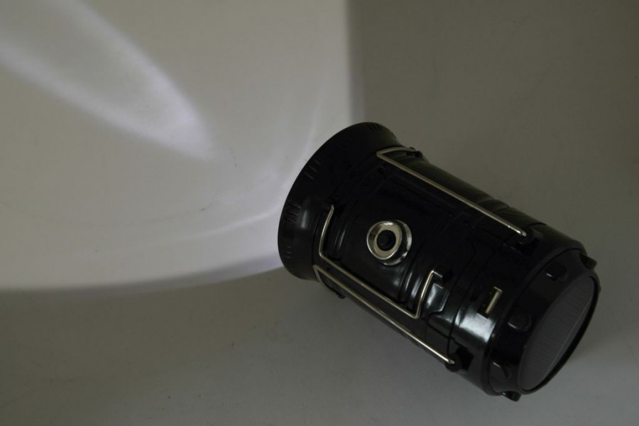 Svítilna je vybavena bodovou LED o světelném toku 20lm, která v kombinaci s reflektorem a skleněnou čočkou vydává vysoký optický výkon. Svítilna je dále opatřena ukrytým osvětlením s 6x LED o světelném toku 60lm, které je ukryto ve vysouvacím těle a zajistí příjemné neoslňující osvětlení. Svícení čelního osvětlení se přepíná vypínačem na boční straně těla a rozsvícení ukrytého osvětlení je řešeno vysunutím těla svítilny. Napájení je řešeno pomocí Li-Ion aklumulátoru 18650 s kapacitou 1200mAh uloženého v těle. Akumulátor je možné dobíjet pomocí přiloženého USB kabelu. Svítilna se rovněž dobíjí na světle pomocí solárního panelu na vrchní straně zařízení. Navíc je možné svítilnu použít jako powerbanku a to pomocí běžné USB zásuvky na boku zařízení.