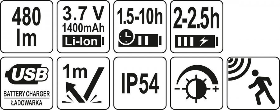 Popis: Čelovka Yato 480lm, pohybový senzor, magnetická základna