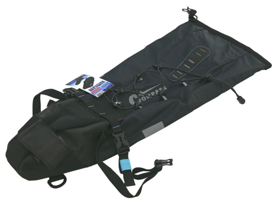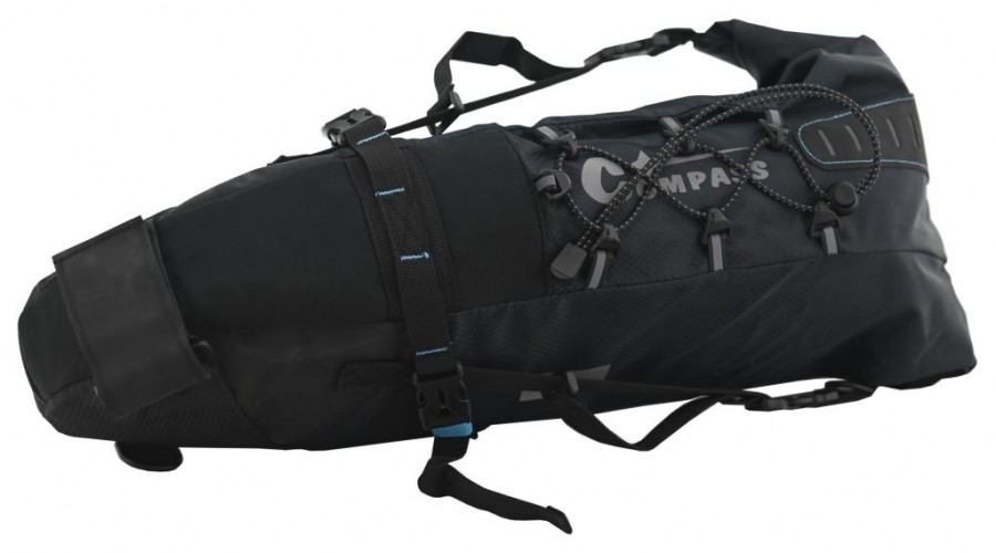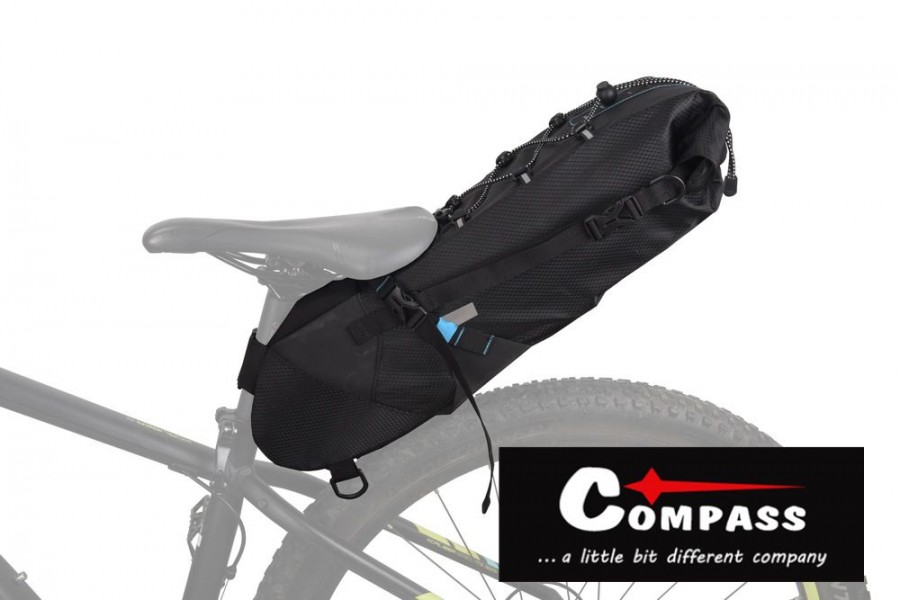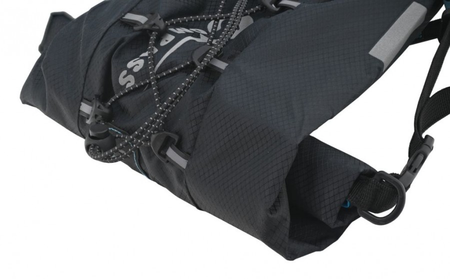 Tato taška poskytuje až 10 litrů prostoru pro vaše věci. Je upevněna pod sedlem širokým popruhem, který obepíná sedlovou trubku. Pro zajištění stabilního držení slouží dva nastavitelné popruhy, které se připevňují ze spodní strany přímo na sedlo.